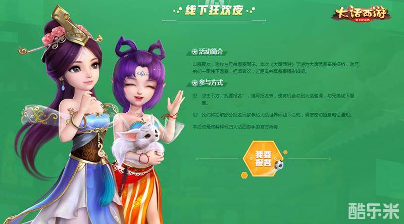 足球狂欢,大话陪伴。《大话西游》手游世界杯福利重磅升级,邀你相聚西安线下看球,共度“盛夏狂欢之夜”,快来报名参加吧。