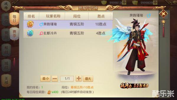 2.胜利次数分别达到1、3、5场都可以额外获得今日胜场奖励,奖励自动发放。