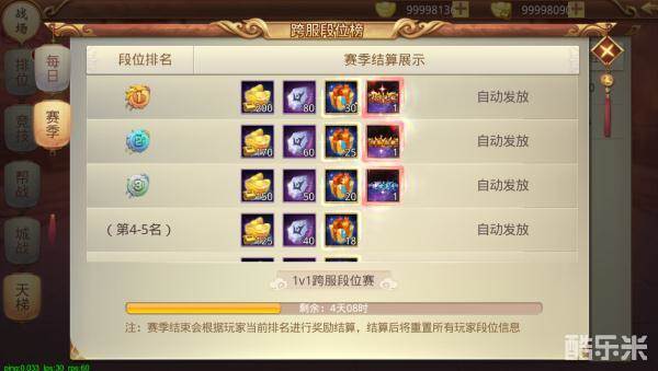 3.每个赛季结束时间为周日24:00,结算本赛季排名奖励,将会产出珍稀称号和道具。
