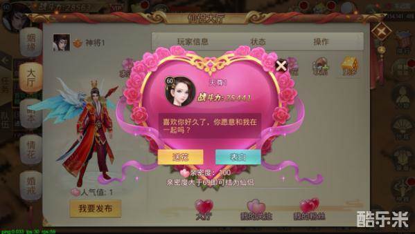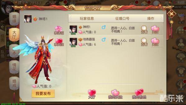 (1)在仙侣大厅可发布征婚信息,也可查看其他玩家发布的征婚信息。