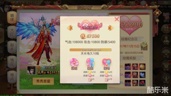 (3)送花可增加双方亲密度,亲密度达到一定值时可获得仙侣称号和属性加成(攻击、防御、气血)。