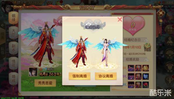 (1)单方强制离婚需要消耗一定数量的元宝或绑定元宝;协议离婚需双方同意即可离婚成功,若有一方不同意,则需在发起协议离婚后10小时才可再次发起协议离婚。发起协议离婚达到3次时无论是否同意均自动解除夫妻关系。
