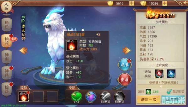 2.外观系统进阶成功后不仅能增加更多属性,还能获得更炫酷外形的高阶外观。