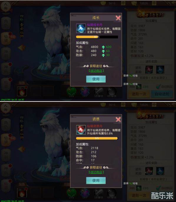 3.外观的阶数越高,可使用的成长丹和资质丹越多,同样每颗成长丹和资质丹增加的属性越多。