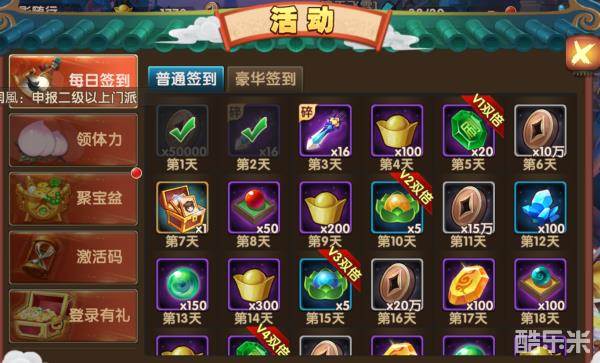 今天就谈谈大话蜀山那些容易被大家忽视的活动吧,为什么要说这个能?因为楼主就忘记了这些活动,首先就说说签到吧,这个多数游戏都有,签到奖励还是很可观的,如果你那天忘记签到,那你就不能拿到本月所有的签到奖励,可能会因此落后于别人。
