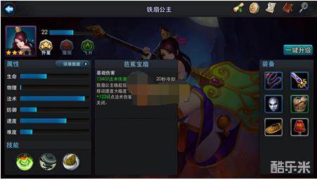 前期铁扇只有一两星的时候优势并不明显——攻击力低,防御低,加血少。有种带她出去PVP跟玩似的。但铁扇一旦升到三星,她的优势就大大显现出来了。芭蕉宝扇是大范围群攻技能,附带缓速效果。此技能一出,屏幕范围内的小怪全部难以幸免。该技能持续时间长,可在数秒内持续使用。看准敌人过来的时机施放技能,可让对方进不来出不去,最后活活被扇子扇死了。