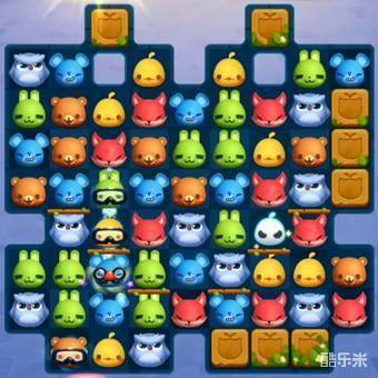 3、本关的棋盘空间并不规则,角落非常的多,且都有各种阻碍,尤其是棋盘上方的两个木箱,无法匹配攻击到。所以有机会还需将特殊棋子进行组合,利用特效组合的大范围攻击,再配合猫头鹰的帮助,才能更快的消除这些角落的木箱,更轻松的通过关卡。