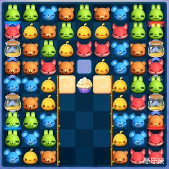 1、本关的主要任务是收集蜂蜜,而蜂蜜需要攻击蜂蜜罐才能生成,所以我们开局先围绕蜂蜜罐进行匹配消除棋子。蜂蜜罐的位置在棋盘两侧边缘,匹配消除的机会并不多。不过这里有传送带存在,蜂蜜罐会随传送带每步移动一格。棋子的布局每步都改变,只要细心观察,还是不难发现匹配机会的。