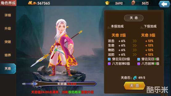角色可以通过升级,突破,培养,天命来提升各方面属性,从而使战力提高,