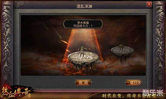 坐落于传奇江湖未名区域的《热血传奇》混乱深渊共有30层,限制30级以上的玩家方能进入;挑战难度为逐层增加,而且每层仅有5分钟的挑战时间,若玩家在规定时间内不能进入下一层即为挑战失败。而且值得注意的是,玩家仅有1次复活机会,超出将会被直接弹出副本,同样为挑战失败。挑战难度极高,需要玩家们认真考虑与准备。