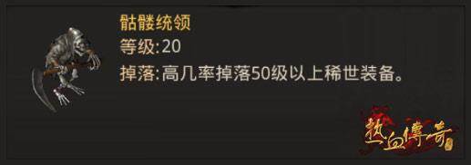 骷髅统领:骷髅统领存在于兽人古墓三层,击杀它一定几率掉落50级以上稀世装备。