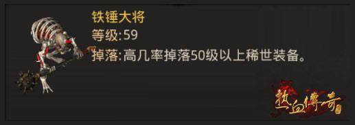 铁锤大将:铁锤大将存在于苍月岛。击杀它有一定几率掉落50级以上稀世装备。