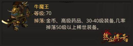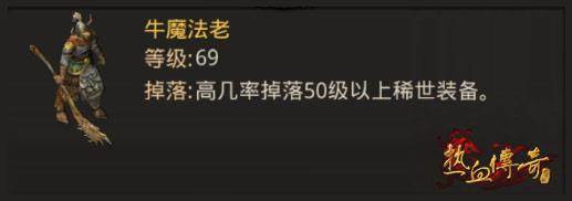 牛魔法老:牛魔法老出没在牛魔寺庙。击杀它有一定几率掉落50级以上稀世装备。