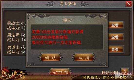 随便做种主线任务将角色升到21级后,小编建议有条件的玩家可以再次购买300元宝,并物尽其用!其中50元宝可以用来再获得完成1次每日任务直接获得20万经验到22级。22级之后会开放参拜龙卫任务,花费100元宝可以额外获得200万经验,等级直接秒升28级。当然这是快速升级的一个途径,如果想慢慢跟主线任务升级体验的话也是OK的!
