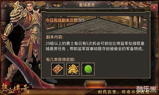 29级开放皇城悬赏,参加皇城悬赏可以获得经验、声望值,声望可以用来升级勋章。