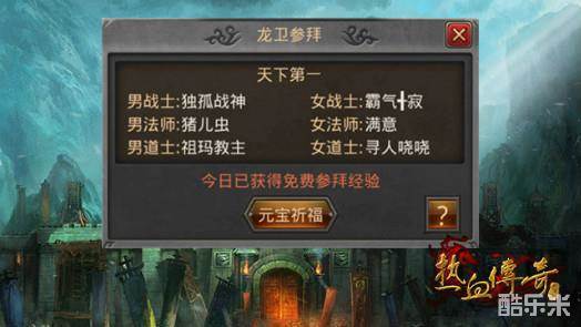 参拜龙卫:在这个等级阶段下参拜龙卫的话,直接使用元宝完成的话可获得300万的经验值,300万的经验值对于当前等级来说还是至关重要的。