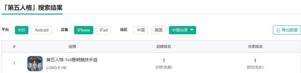 自《第五人格》7月5日在App Store上线以来,其在海外的热度和人气就一直十分火爆。目前,《第五人格》已经登上了我国港澳台地区App Store的总榜第一以及日本和泰国的免费榜第一。7月6日还获得了全球一百多个国家和地区的App Store推荐。
