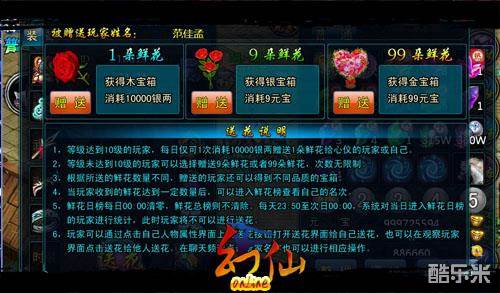 《幻仙OL》送花系统鲜花排行榜