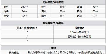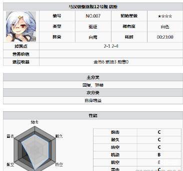 评价:唐斯、卡辛这类的驱逐都是技能类似的,但是定位比较模糊,基本算是标准的军事委托+狗粮大队常见人员,尤其是1技能,对于本身血就很少的驱逐来说基本是一个废技能,能不练就别练了。喂掉是最好的选择了。