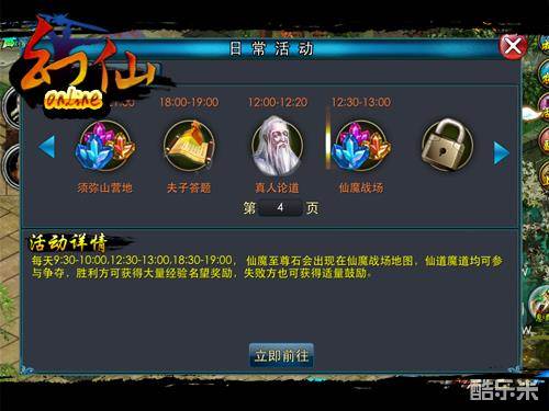 “仙魔战场”是日常活动,任何时间玩家都可以独自或者组团前往仙魔战场地图进行刷怪刷经验。玩家可点击UI的活动直接传送到马夫点,进入地图。进入地图之后可以到找仙道(魔道)NPC接取突袭魔道(仙道)任务。因为击杀的怪物实力较强,玩家必须备好小药与奶妈前往哦~完成任务即可领取丰厚的奖励!绝对是玩家升级、刷经验的好地方!