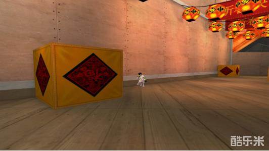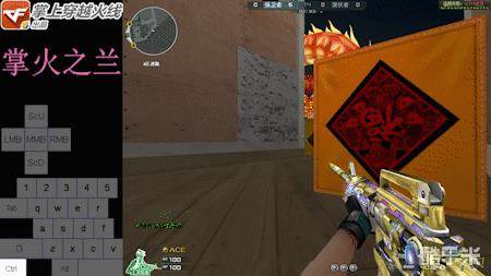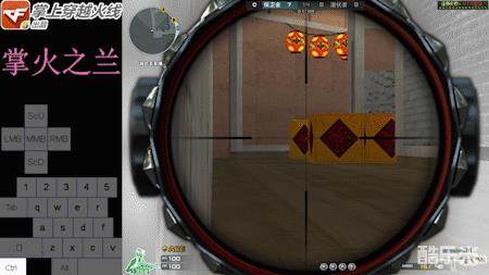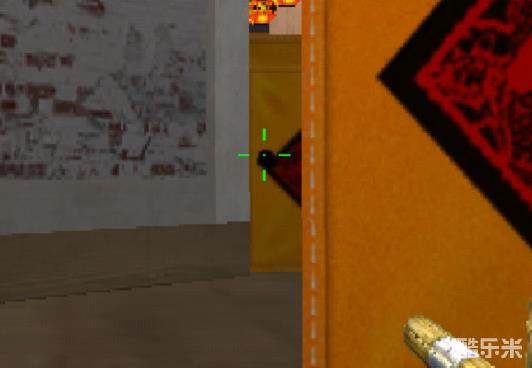然后就是枪口的位置了。准星推荐大家使用A或者B因为这两个准星是有纵标的,比较容易对准。准星对准箱子上大福字黑边上的角,略微高一点或者低一点都行。想打头的话稍微高一点,求稳的话稍微低一点。然后就是看纵标了,纵线要贴着旮旯那边的墙,但是不能重合,搭点边就行。对好之后点那么三四下就可以走了,因为对面已经躺下了。