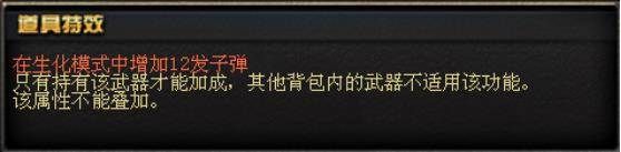 但是在生化模式中仅仅只有自身子弹的加成,并不适用于其他的武器,且这个属性并不能够叠加。虽然这个生化模式属性只能本身使用,经过小编在生化模式中的测试,单个弹夹可以提升到48发哟,试想一下在生化模式中一款步枪能有如此惊人的载弹量,是多么可怕的存在,简直堪比冲锋枪的载弹量了!