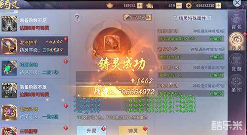 最后编辑于7年前每一个怀揣梦想,希望成就一番霸业的玩家都知道,要在一方称王,实力必须足够强大!即使拥有了顶级的套装,也需要对装备的各项性能进行不断强化,使装备焕发神力。《莽荒纪2018》全新推出“铸灵”系统,可赋予装备更好的属性,使之成为撼世的神兵利器,道友一统天下将指日可待!一起来看看“铸灵”系统到底有何神奇之处吧~