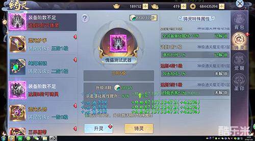 当然,想要对装备进行铸灵还需要用到一样必不可少的物品,那就是铸灵值,此物品通过铸灵塔副本就可获得。玩家使用铸灵值对装备进行升级,达到一定阶段即可进行升阶操作,每一次升阶,装备的品质将大大增强!如果没达到升阶要求的玩家也不用担心,装备升灵同样也可以给玩家的生命、防御、暴击等各项属性带来提升,全面提高战斗实力,霸占洪荒!