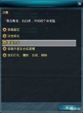 《仙侠世界》中套装合成NPC名为“沈赛”,他在场景“十方镇”和“凌霄城”都有据点,当你拿到属性很好的与套装职业、部位均相同装备时就可以去找他进行装备合成啦!与沈赛对话,选择套装合成选项。