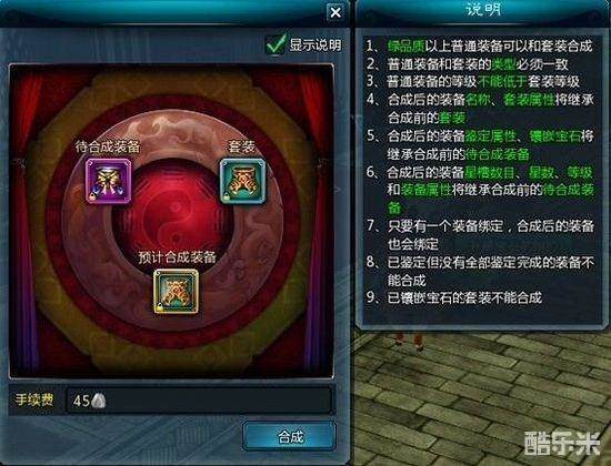 把你想要合成的套装放在右边,然后再把你想要的相同部位、相同职业、等级不低于套装等级的属性优秀的装备放在左边,最终就能合成出拥有优秀属性的橙色套装啦,预计合成装备可以预览你即将合成的套装摸样哦!
