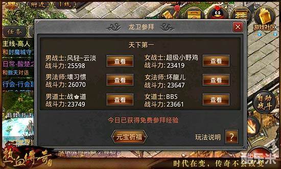 这个阶段开始,升级开始变得比较慢。一天只能升1-2级。快速的升级途径就是100元宝参拜龙卫获得200万经验;还有就是元宝做日常任务。这样快速升级后,可以刷新主线任务。