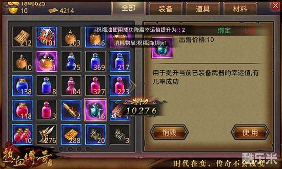 使用祝福油可以提升当前已装备武器的幸运值,有一定的成功几率。祝福成功后可以在一定程度上提升装备武器的战斗力。