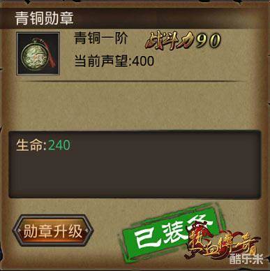 玩家等级达到30级时,即可开放勋章系统。开启该系统后,玩家会自动获得青铜一阶的勋章。勋章是永久绑定在身上的。通过对勋章等级的提升,来提升勋章的基础属性和角色的战斗力加成。