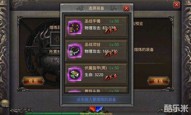 5.消耗对应材料,装备熔炼成功!(装备熔炼消耗材料是百分比成功的)