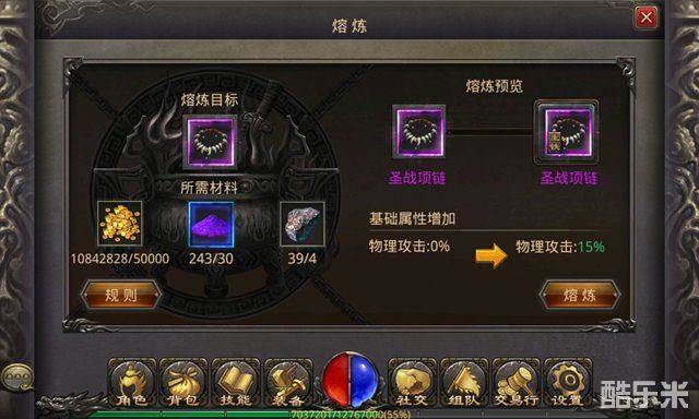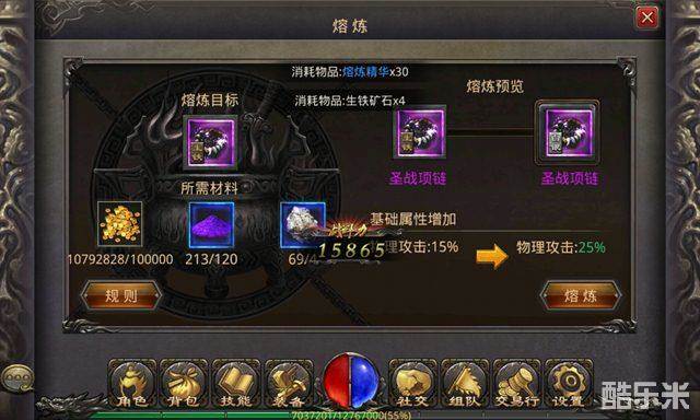 以圣战项链为例,未经熔炼的项链通过熔炼提升到生铁档次,可以提升15%的物理攻击。