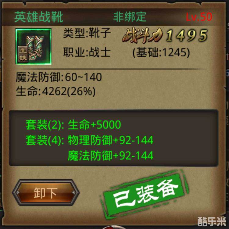 值得大家注意的是,50级套装熔炼加成的百分比要比50级非套装熔炼加成的百分比高很多,以下是威震天下防具套中的英雄战靴 与 风云战靴 熔炼对比