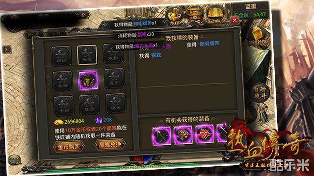 上面说到降魔洞窟副本奖励和爆很多的晶魄,那么打完副本产出这么多晶魄有什么用呢?亲们点开武器店的铁匠铺就知道啦,晶魄的作用是跟十万金币抽一次的抽奖一样抽取装备用的,二十晶魄抽一次,小编今天抽了几十次,结果大大滴惊喜啊!基本上抽十次七八件四十级装备,两三件紫装,抽到紫装的几率可比花金币高多啦,貌似这是在给我们的熔炼系统做贡献呀,有了降魔洞窟副本,不用太担心紫装不好搞了。