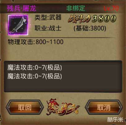 概述:残兵·屠龙与屠龙这两件武器可以拿来比对,首先两者的不同屠龙武器没有佩戴等级限制,而残兵·屠龙的佩戴等级为70级。残兵·屠龙比屠龙的基础战斗力要高出496点,虽然在基础属性上,残兵·屠龙最大物理攻击与屠龙相比减少了80点,但是最小物理攻击却比屠龙有提升328点。鉴于武器幸运值的影响,武器一般很少能打出最大攻击,所以最小物理攻击属性的提升。也让残兵·屠龙这个武器相对于屠龙而言性价比更高。