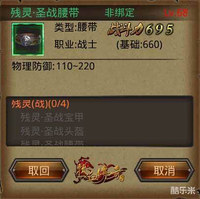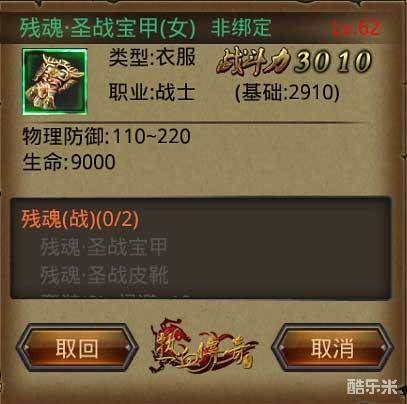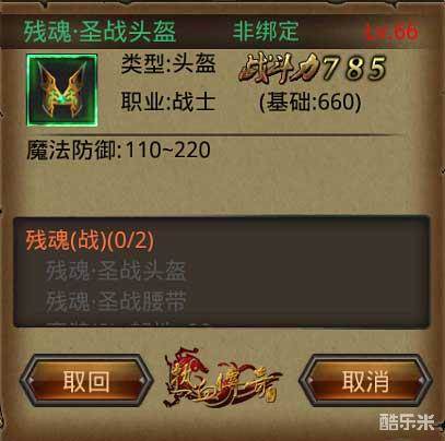 概述:残魂装备可以用以和圣战装备比对,残魂装备虽有不同的佩戴等级限制,但装备的基础战斗力要比圣战装备高,但具体属性要差一点。不过残魂装备除了基础属性外,有额外的套装属性加成,即装备残魂·圣战宝甲和残魂·圣战皮靴,可以为角色增加10点的闪避值;装备残魂·圣战头盔和残魂·圣战腰带,角色可以获得20点的韧性加成。