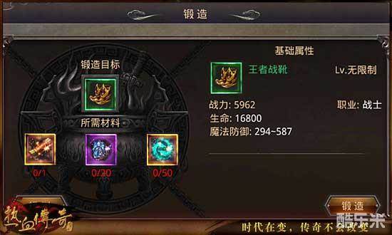 2、重铸:卧龙卷轴·王者*1+卧龙印记·王者*50+光芒道靴