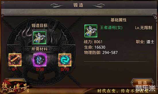 2、重铸:卧龙卷轴·王者*1+卧龙印记·王者*70+光芒道袍