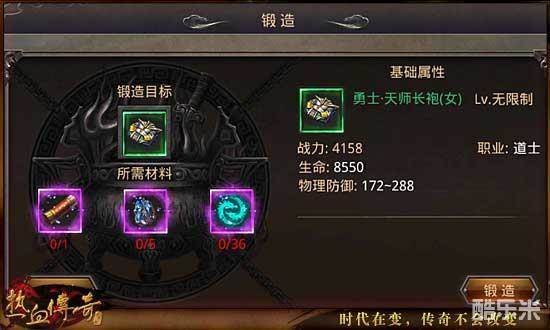2、重铸:卧龙卷轴·勇士*1+卧龙印记·勇士*36+天尊道袍(男)/天师长袍(女)
