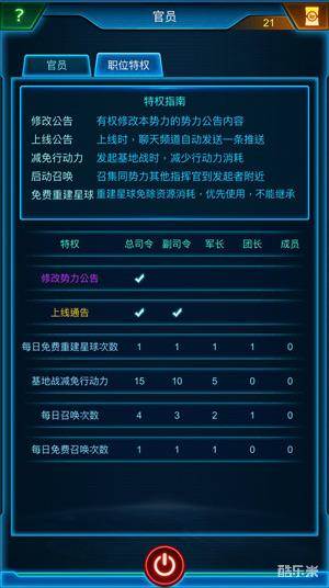 个人的能力愈强,肩上的责任就愈重。在《银河战舰》中,系统根据官员职位的高低,赋予官员数种不同的职位特权。例如团长以上官职的指挥官可行使召唤权,召唤本势力其他指挥官到附近区域;副司令相对而言职位更高,不但可以发起召唤、特殊性,还有获得系统赋予的上线通告广播特权,让势力的其他成员看到其每日首次登录的登录信息,方便玩家快速组织战斗尽享强者特权。