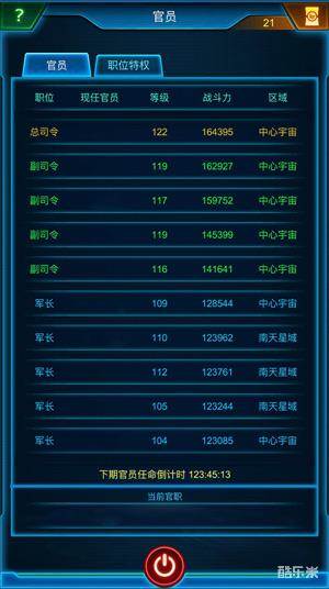 官员玩法作为《银河战舰》手游势力系统中的核心玩法,三方势力可以任命实力雄厚的成员为本国官员,官员由高到低共分为总司令、副司令、军长和团长四大类,每一类官职所对应的称号及特权都不尽相同。这55名官员各司其职,在岗位上释放光和热,为本势力谋福利求发展。作为己方势力的领导层,深谙策略之道的官员门将指挥势力其他成员进行战斗,官员们也能尽情享受每场运筹帷幄的星际战役!