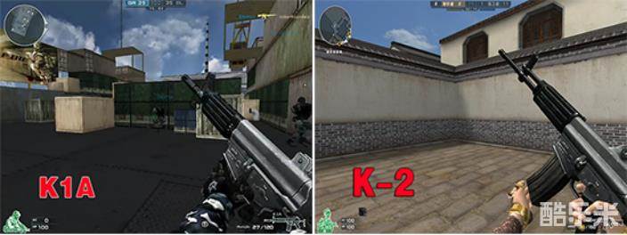 游戏中K-2是步枪,而K1A是冲锋枪(CF里给它的定义是冲锋枪,但实际上它是步枪武器。So外形像步枪的冲锋枪,手动滑稽)