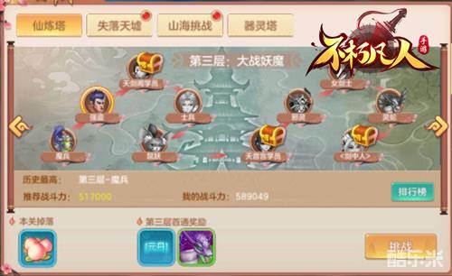 唯有经历仙炼塔考验的修士,才有资格踏上真正的飞仙之旅!每一层共有10道关卡,各种魔兵邪灵会成为你通关路上最大的障碍,你需要最大程度发挥实力击杀BOSS,才能进入下一关。每一层闯关成功后,可以获得山海志图鉴中记载的远古异兽,还有异兽成长所需的万年蟠桃作为奖励,赶紧来挑战吧!