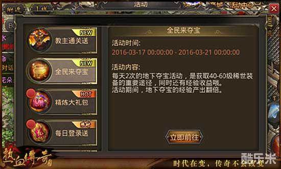 在热血传奇中有各种各样的活动副本,而地下夺宝是为数不多的能快速提升自身装备硬实力的副本之一。地下夺宝虽然能为玩家们提供大量提升自身实力的重要装备,但是其夺宝的难度却相当大,对于初级玩家们来说更是如此。今天我就全面的为大家解析夺宝的技巧。