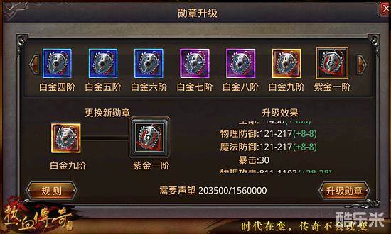 3、勋章等级:提升勋章等级可以提升角色的战斗力,勋章等级越高,为角色提供的战斗力加成越多。