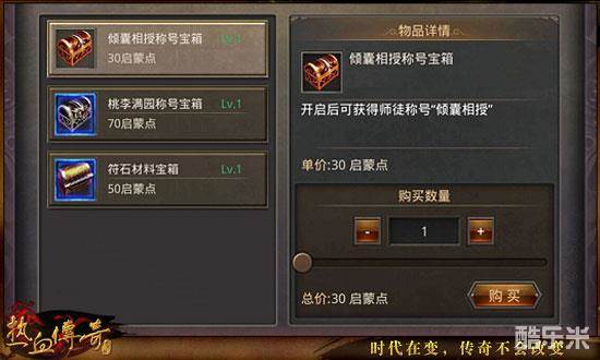65级以上的玩家才可以收徒弟,每个玩家最多同时拥有五个徒弟,无论因为何种原因解除关系,都需冷却24小时才能再次拜师或收徒。师徒关系中,师父获得的绝对不比徒弟少,当徒弟战斗力达到3.5W、4.5W,以及成功出师,师父分别可获得1点、2点、20点的启蒙点奖励,启蒙点可激活称号“倾囊相授”和“桃李满园”,这两个称号分别需要30、70启蒙点。启蒙点也不是在激活称号之后就没用了,我们还可以兑换符石材料宝箱,每个宝箱需要50启蒙点。