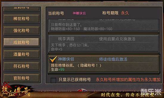 师徒关系还有一个鲜为人知的隐藏称号“神雕侠侣”,获得该称号的条件是两人既是师徒关系又是夫妻关系,就好像杨过和小龙女。